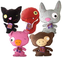 These cuddly creatures are really cute and possibly crib-worthy. There’s Boo, Rob, Toxic, Muck, and Stitch—little zombie, cats, monkeys, pigs, worms (actually I think Toxic is a snake), and bunnies guaranteed to create a sensation at the next baby shower. Bigger kids like them too.