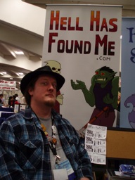 Thinking back on WonderCon today and the many, many talented guys I met. Oh, the darkness and the deliriousness of it all! A favorite—because of his super strip, Hell Has Found Me—is Scott Aleric, a self described “starving artist” (well, he says he isn’t technically starving, but the description is dramatic) “forever cursed to give live to the images bubbling in his mind …” (also dramatic). Great images: His creepy comic cast is always up to something. I’m a fan and I’m going to learn more.